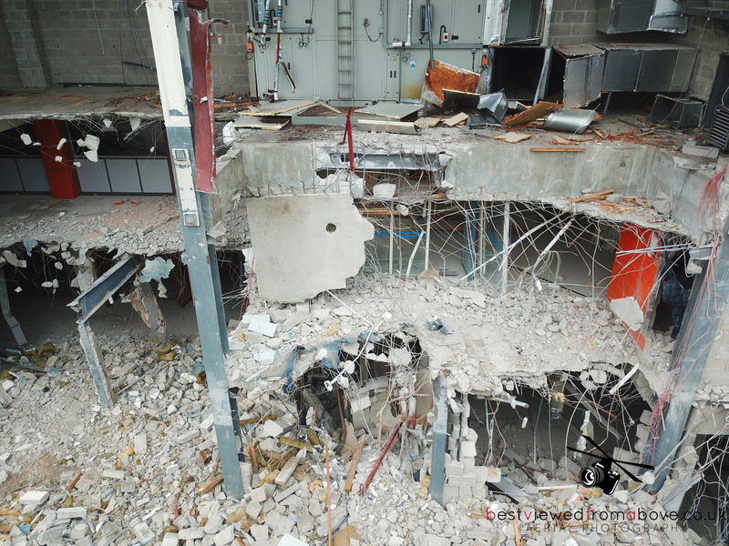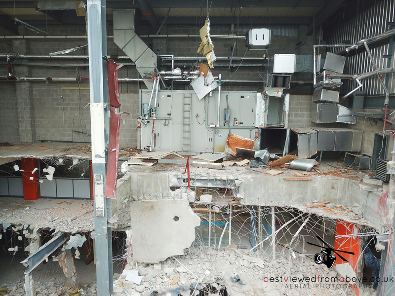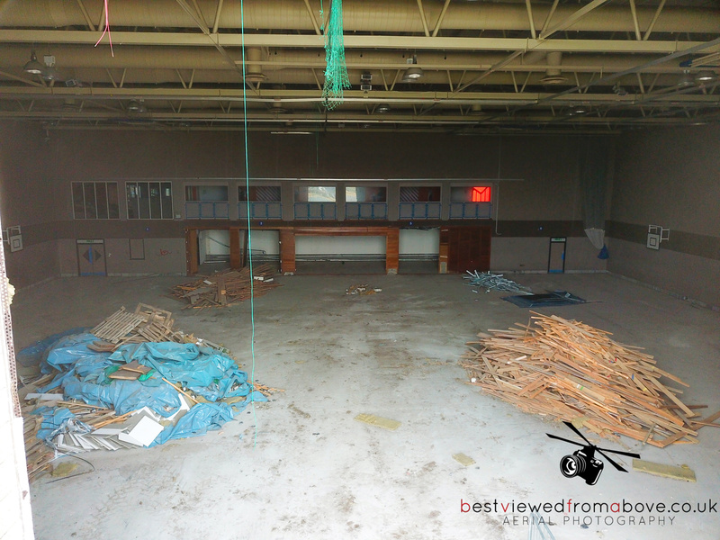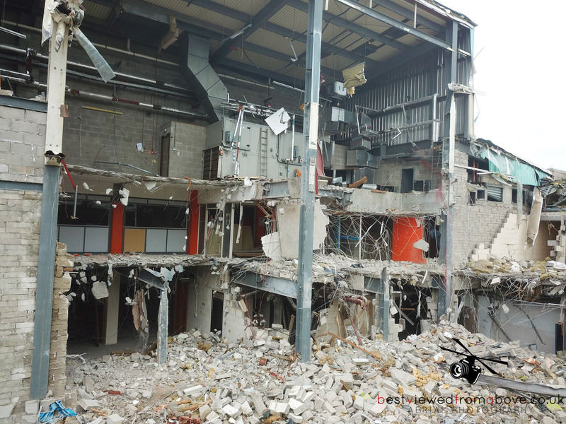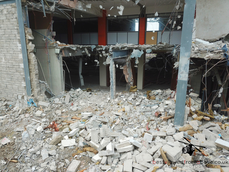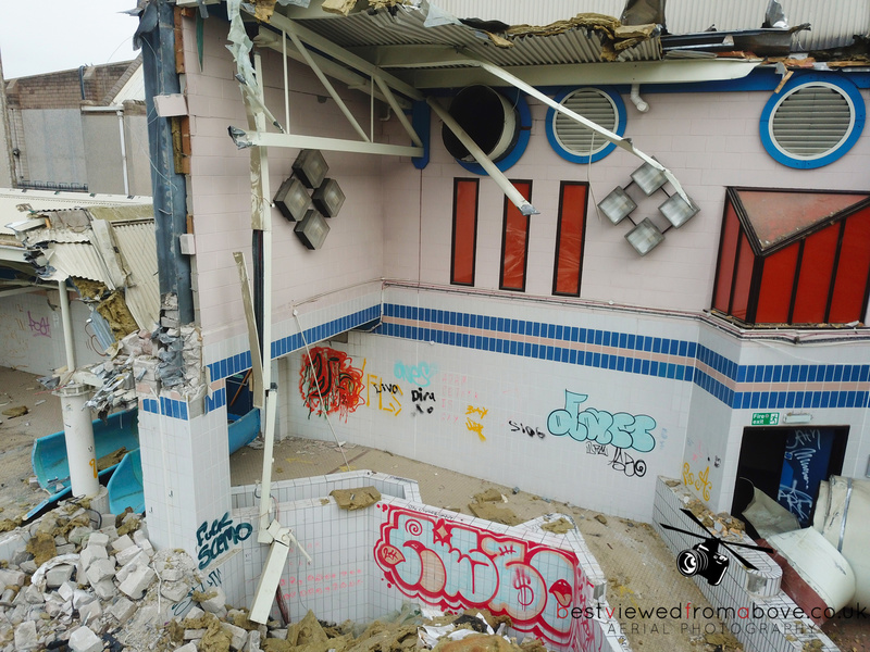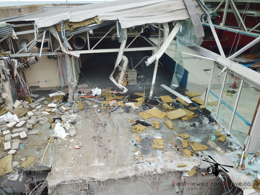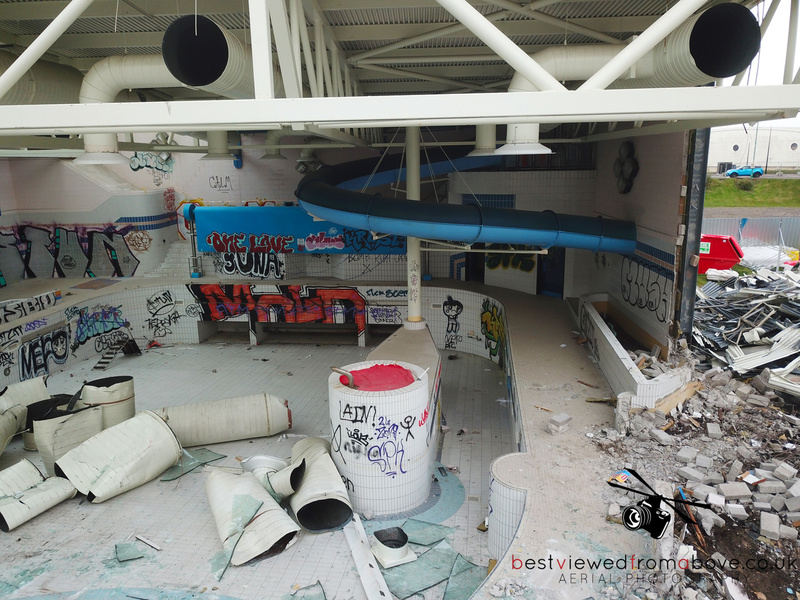 The pool, gym and sports halls are completely gone with what appears to be only the front of house, changing areas and the stairwell to the water slides left.