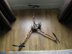 Second flight was with the Tricopter again LOS due to fatsharks being flat, GoPro was set to take pictures only but again it ended in the dirt after 4 mins of flight. Left arm Deans connector spring failed causing a loose connection, started leaning left then the motor kicked back in and flipped before I could save it. Right motor ripped off and rear arm snapped but had already started V3 anyway so all not lost :-).