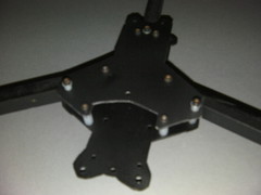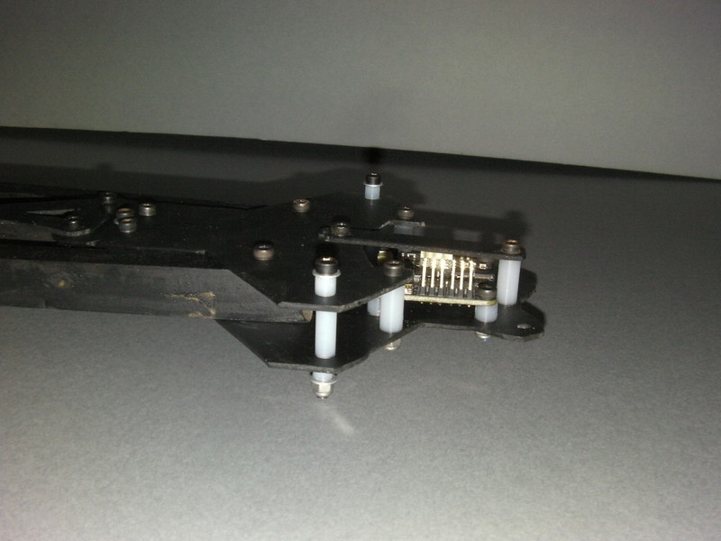 Once the holes were drilled I used m3 hex head screws and nylon spacers to hold it all together. You will notice in the photo I also trimmed the top front edge to allow access to the CopterControl board but looking back I should of left some soft of support to limit the amount of flex and vibrations transmitting to the Gyro's.