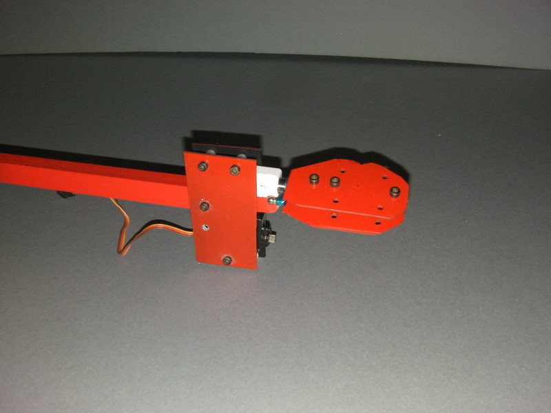 Now for the Yaw Mechanism which am using my tried and tested method. Basically its a B&Q corner block, 65mm x M3 and an Align 450 Pro all bolted together then screwed to the wood. Then I take the Servo and sandwich it between two pieces of GRP, bolt it to the rear arm nice and tightly.
